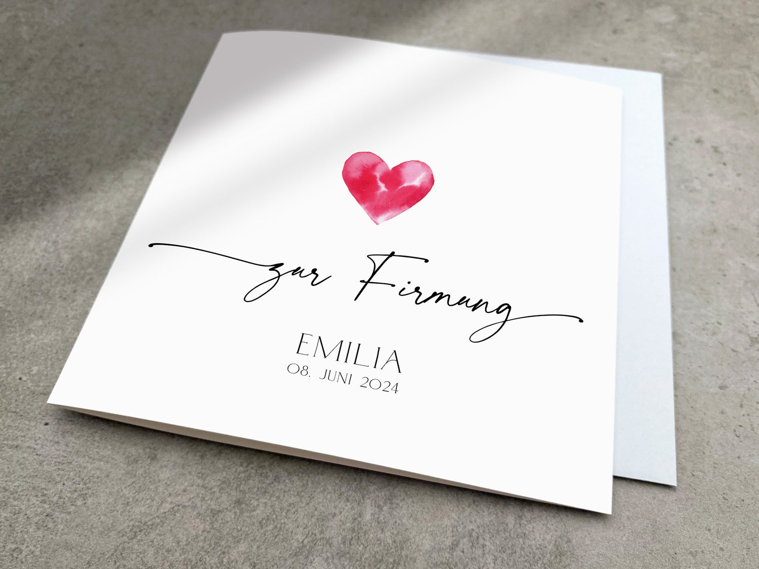 Moderne Karte zur Firmung im schwarz-weiß Stil mit rotem Herz